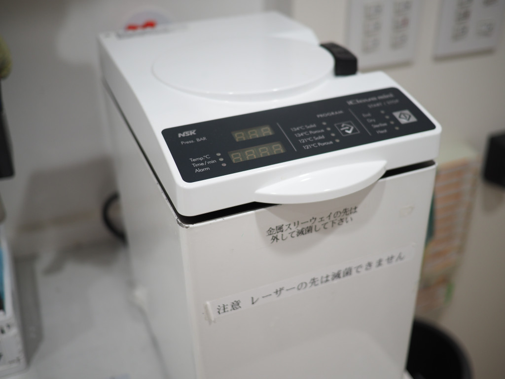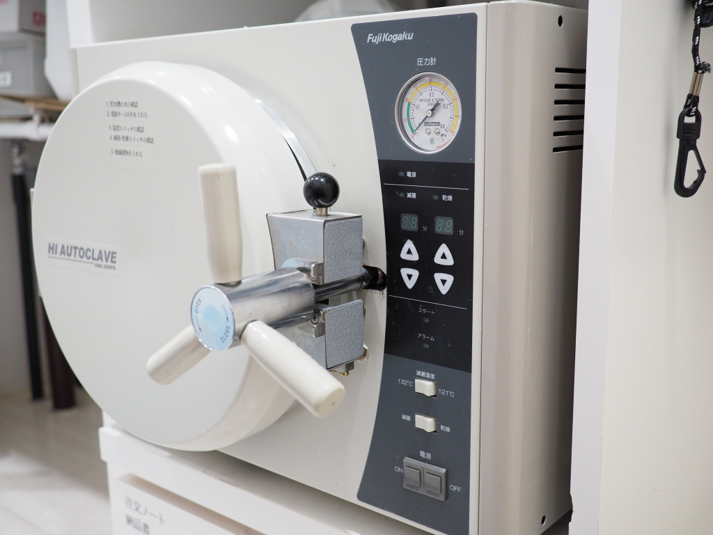 衛生面には十分気をつけていて、滅菌できる物は滅菌し、滅菌出来ない物はディスポーザブルで、それも出来ない物は準滅菌と呼ばれる薬液に浸けています。