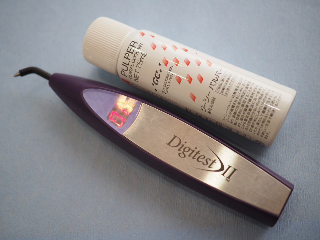 ・歯髄(歯の神経)が生きているのか死んでいるのかX線ではわかりづらい時に。電気を通したり、冷たい物を当てて確認します。