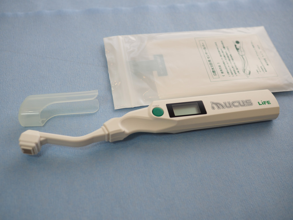 ・ムーカスにより簡易ではありますが口腔乾燥の指標としています。
