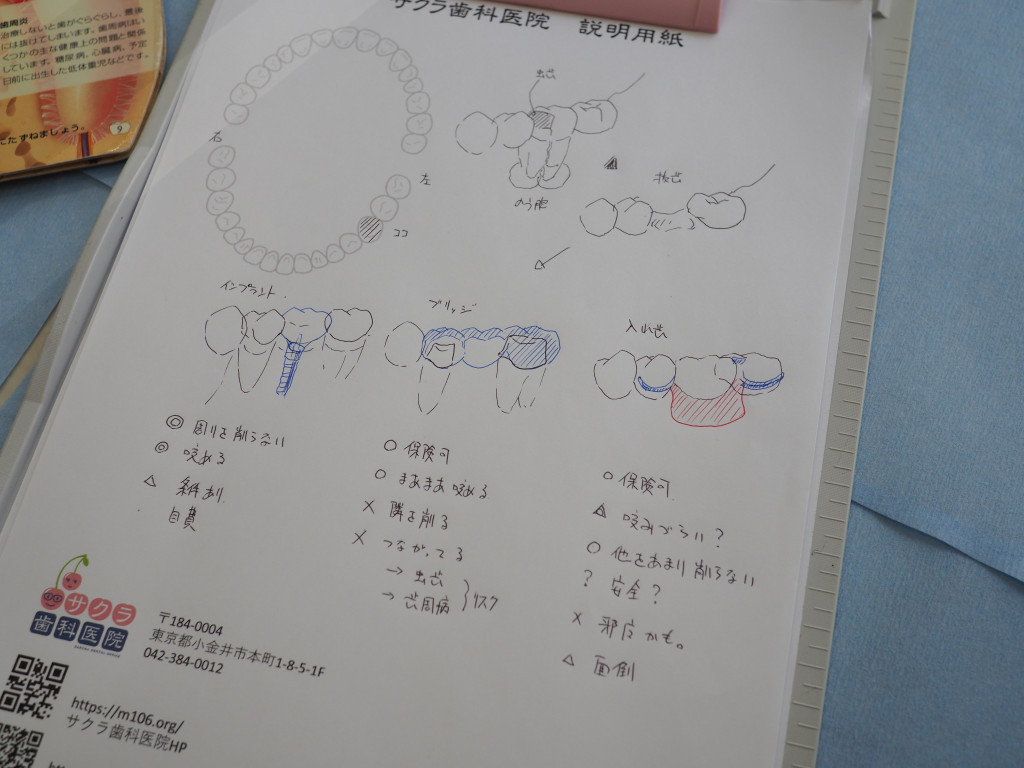 お絵描き好きの院長は、患者さんごとの状況に合わせてその場でイラストを描き起こし、症状や将来への流れ、取り得る選択肢を説明し、最後に患者さんにお渡ししています(Instagramにもアップしています)